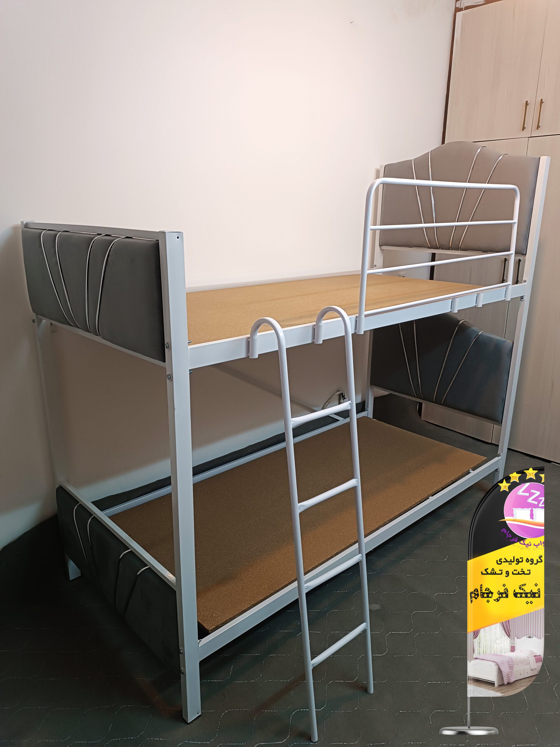 تخت خواب دو طبقه عروس مروارید مدل مرجان یک محصول جدید، زیبا و بادوام از کالای خواب نیک فرجام می باشد.این تخت شکیل و مستحکم از جنس فلز می باشد، تاج و پایین تخت از چرم یا پارچه لمسه ( به انتخاب مشتری ) و کشوها MDF می باشد .ویژگی این محصول استفاده بهینه از فضا و طول عمر طولانی می باشد که از بهترین و با کیفیت ترین متریال تهیه و تولید شده است.